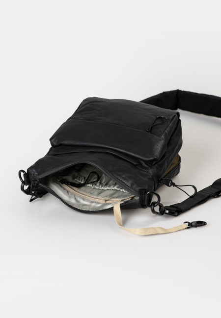 Squishy and lightweight, yet robust and rainproof - Yura combines compact storage space with a modern design made from puffy, tightly woven ripstop fabric made from recycled nylon and cotton that adds a sporty touch to your look. The main compartment with zipper offers enough space for your daily essentials. The things you want to have quickly to hand can be safely stored in various outer pockets. Inside, you will find an additional zipper pocket and a slip-in pocket for your smartphone, as well as a practical key strap. Thanks to the all-round zipper, the bag volume can be expanded as required so that you always have enough space for everything you want to take with you.