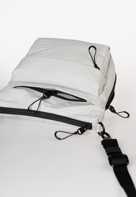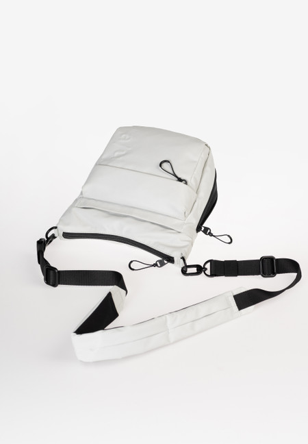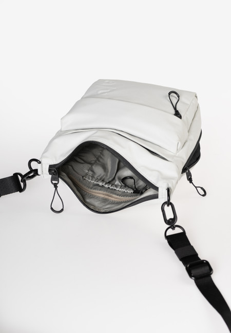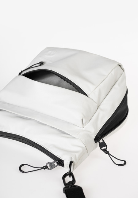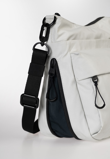 All styles have a water-repellent impregnation. An additional PFAS free coating gives them a highly functional, rainproof surface. We also use special high-performance threads that do not absorb water. The styles in the color cloud nine are made from tightly woven, recycled nylon certified according to the Global Recycled Standard and have an additional dirt-repellent coating. The tightly woven ripstop fabric of the models in the color black is made from recycled nylon and GOTS certified cotton. Inside is a durable lining made from recycled polyester.