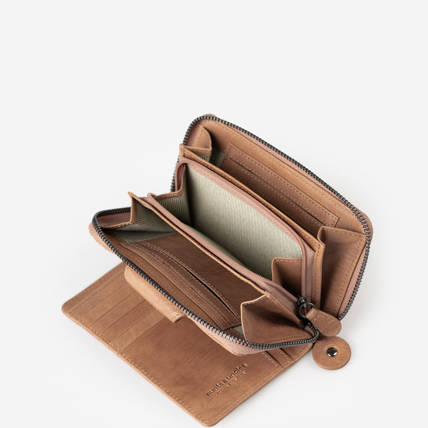 Francis ist eine zweigeteilte Geldbörse aus nachhaltig gegerbtem Premium-Leder und die größere Variante von Lesley. Sie verfügt über ein aufklappbares Fach, das mit einer Lasche und einem Druckknopf schließt. Ein weiteres Fach lässt sich mit einem umlaufendem Reißverschluss schließen. Francis bietet 14 Kartenfächer, einschließlich eines transparenten Fachs, vier große Einsteckfächer und ein großes Reißverschlussfach im Inneren. Zusätzlich gibt es zwei weitere große Fächer für Belege oder Scheine sowie ein Münzfach mit Reißverschluss auf der Rückseite. Der integrierte RFID-Schutz schützt deine Daten vor Datendiebstahl.