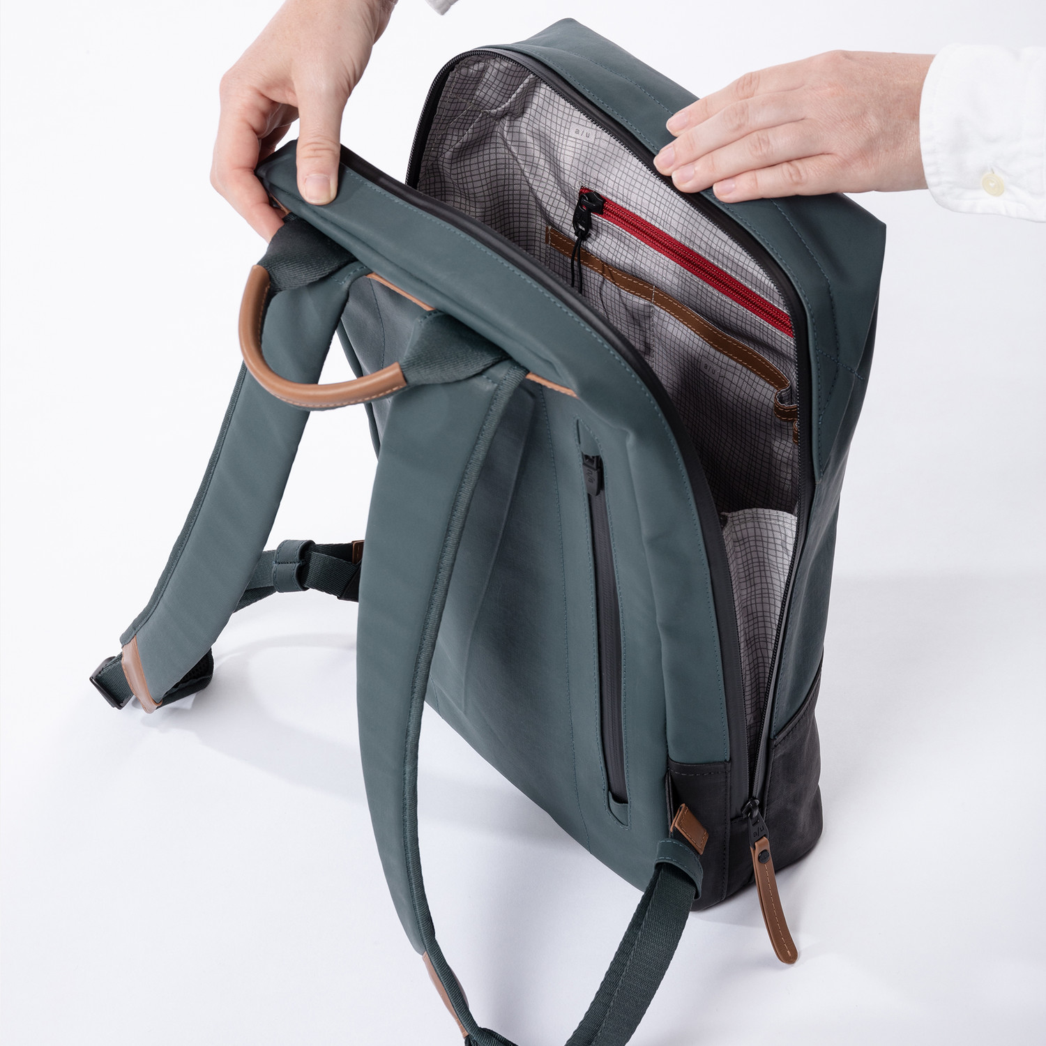 Das Canvas in unserer Japan Serie ist aus dicht gekämmter und gewebter Biobaumwolle gefertigt und mit einem seidenmatten Vintage-Coating veredelt. Das PFAS-freie Coating verleiht den Styles eine wasserabweisende Oberfläche mit lederähnlicher Optik, die sich mit dem Gebrauch poliert. Wir verwenden für diese Serie spezielle Hochleistungsfäden, die kein Wasser ziehen. Die regenfesten Reißverschlüsse sind aus recyceltem Material gefertigt. Die Lederapplikationen sind aus nachhaltig gegerbtem Premium-Rindleder. Pflegeempfehlung