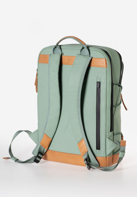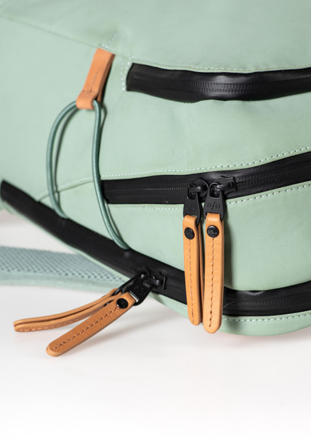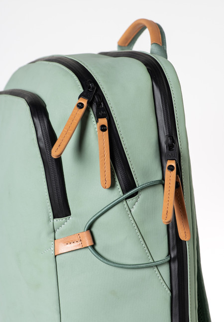 Das Canvas in unserer Japan Serie ist aus dicht gekämmter und gewebter Biobaumwolle gefertigt und mit einem seidenmatten Vintage-Coating veredelt. Das PFAS-freie Coating verleiht den Styles eine wasserabweisende Oberfläche mit lederähnlicher Optik, die sich mit dem Gebrauch poliert. Wir verwenden für diese Serie spezielle Hochleistungsfäden, die kein Wasser ziehen. Die regenfesten Reißverschlüsse sind aus recyceltem Material gefertigt. Die Lederapplikationen sind aus nachhaltig gegerbtem Premium-Rindleder. Pflegeempfehlung