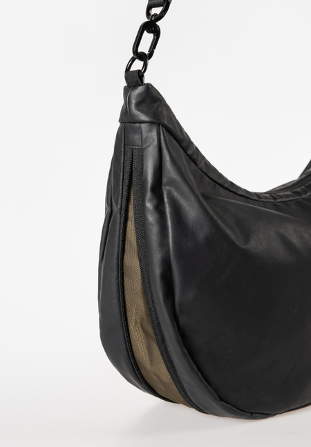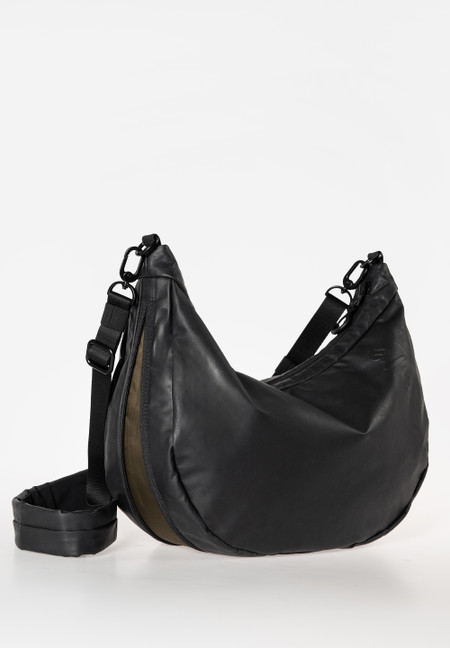 Eine Halfmoon Bag, robust, regenfest und zeitlos designt. Koyoshi RE ist die größere Variante von Yoshii RE für alle, die unterwegs noch ein bisschen mehr Platz brauchen. Die lässige Umhängetasche ist aus recyceltem Nylon gefertigt, das Koyoshi RE zu einem leichten und langlebigen Alltagshelden macht. Das geräumige Hauptfach bietet dir verschiedene, übersichtliche Einsteckmöglichkeiten, ein Schlüsselband und ein herausnehmbares Extra-Täschchen. Ein umlaufender Reißverschluss erlaubt es dir, das Volumen der Tasche nach Bedarf zu vergrößern. Wichtige Essentials sind in einem rückseitigen Reißverschlussfach sicher und körpernah untergebracht. Für besonderen Tragekomfort sorgt ein extra Schulterpolster.