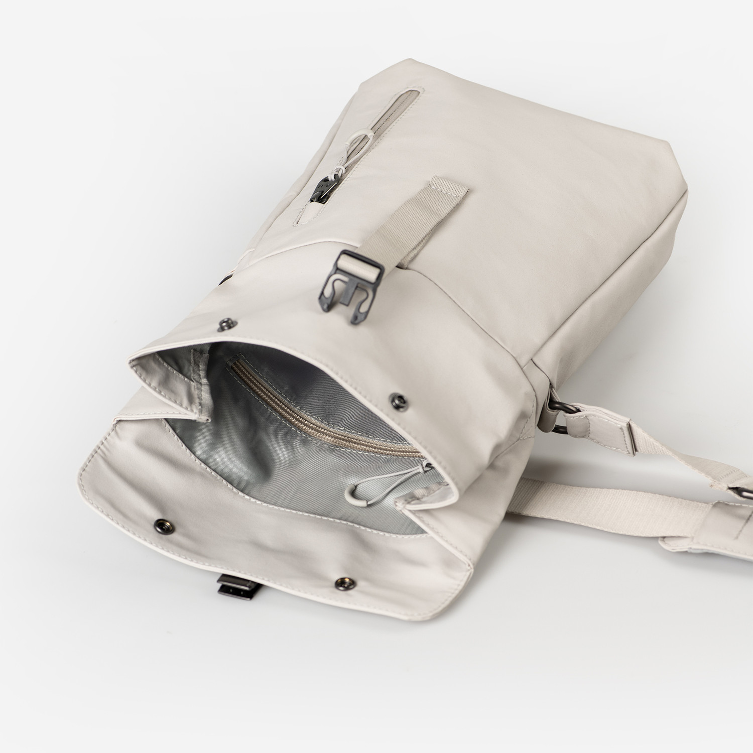 Das leichte und zugleich extrem strapazierfähige, recycelte Nylon hat ein Zertifikat für den Global Recycled Standard. Zusätzlich zu einer wasserabweisenden Imprägnierung schützt ein PFC- und PFAS-freies Coating zuverlässig vor Nässe und verleiht dem Material eine hochfunktionale, wetterbeständige Oberfläche. Darüber hinaus verwenden wir spezielle wasserabweisende Hochleistungsfäden. Die Reißverschlüsse sind wasserabweisend imprägniert. Die Aquaguard Reißverschlüsse von YKK werden aus recyceltem PET hergestellt. Die Lederapplikationen der nicht veganen Styles sind aus nachhaltig gegerbtem Premium-Rindleder gefertigt und stammen aus einer LWG-zertifizierten Gerberei. Der a/u-Futterstoff ist aus recyceltem Polyester gefertigt. Pflegeempfehlung