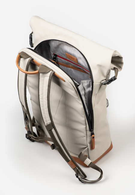 Das Canvas in unserer Japan Serie ist aus dicht gekämmter und gewebter Biobaumwolle gefertigt und mit einem seidenmatten Vintage-Coating veredelt. Das PFAS-freie Coating verleiht den Styles eine wasserabweisende Oberfläche mit lederähnlicher Optik, die sich mit dem Gebrauch poliert. Wir verwenden für diese Serie spezielle Hochleistungsfäden, die kein Wasser ziehen. Die regenfesten Reißverschlüsse sind aus recyceltem Material gefertigt. Die Lederapplikationen sind aus nachhaltig gegerbtem Premium-Rindleder. Pflegeempfehlung