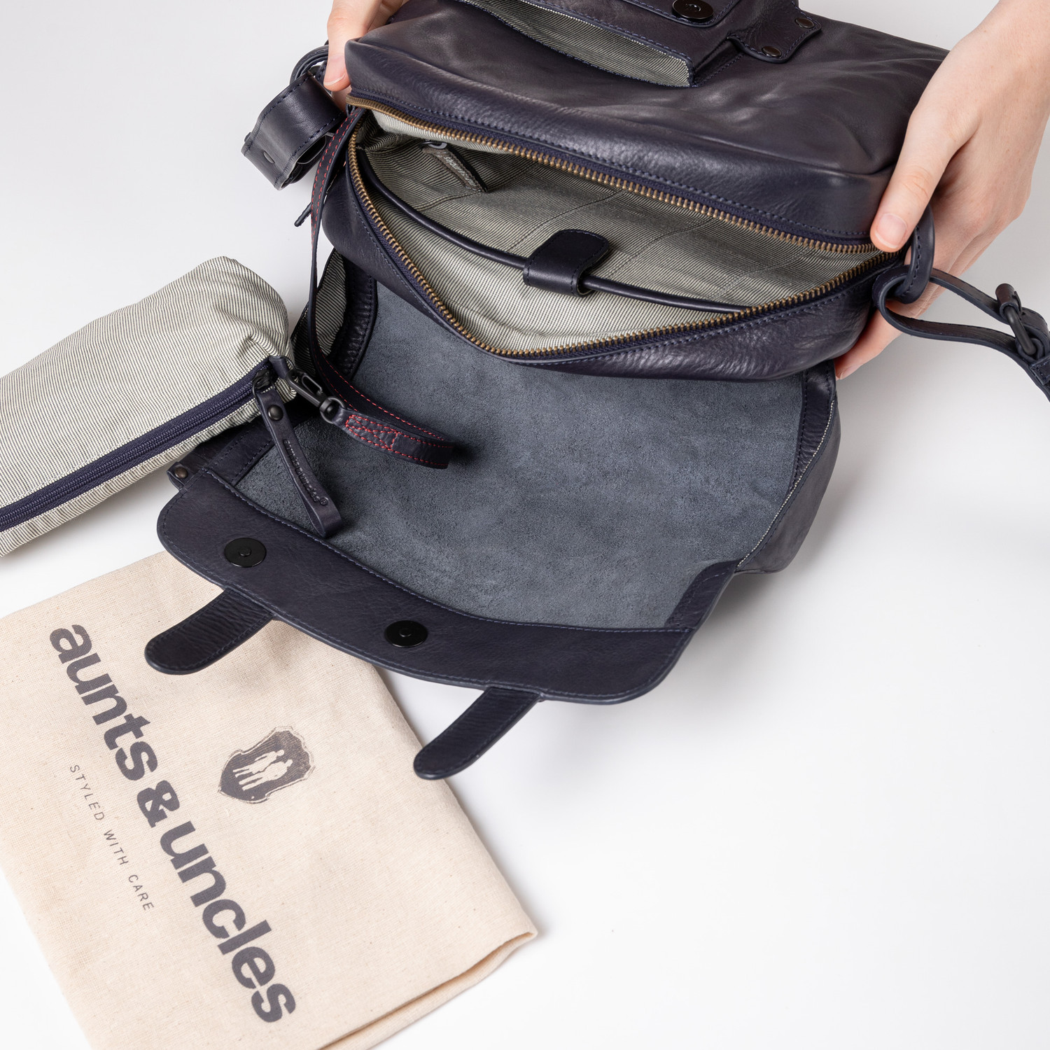 Das Premium-Rindleder in Grandma's Luxury Club ist ein hoch vegetabil gegerbtes Anilinleder mit welligem Look. Die charakteristischen matten und glänzenden Kontraste entstehen durch sorgfältige händische Nachbearbeitung und machen jedes Stück zu einem Unikat. Pflegeempfehlung