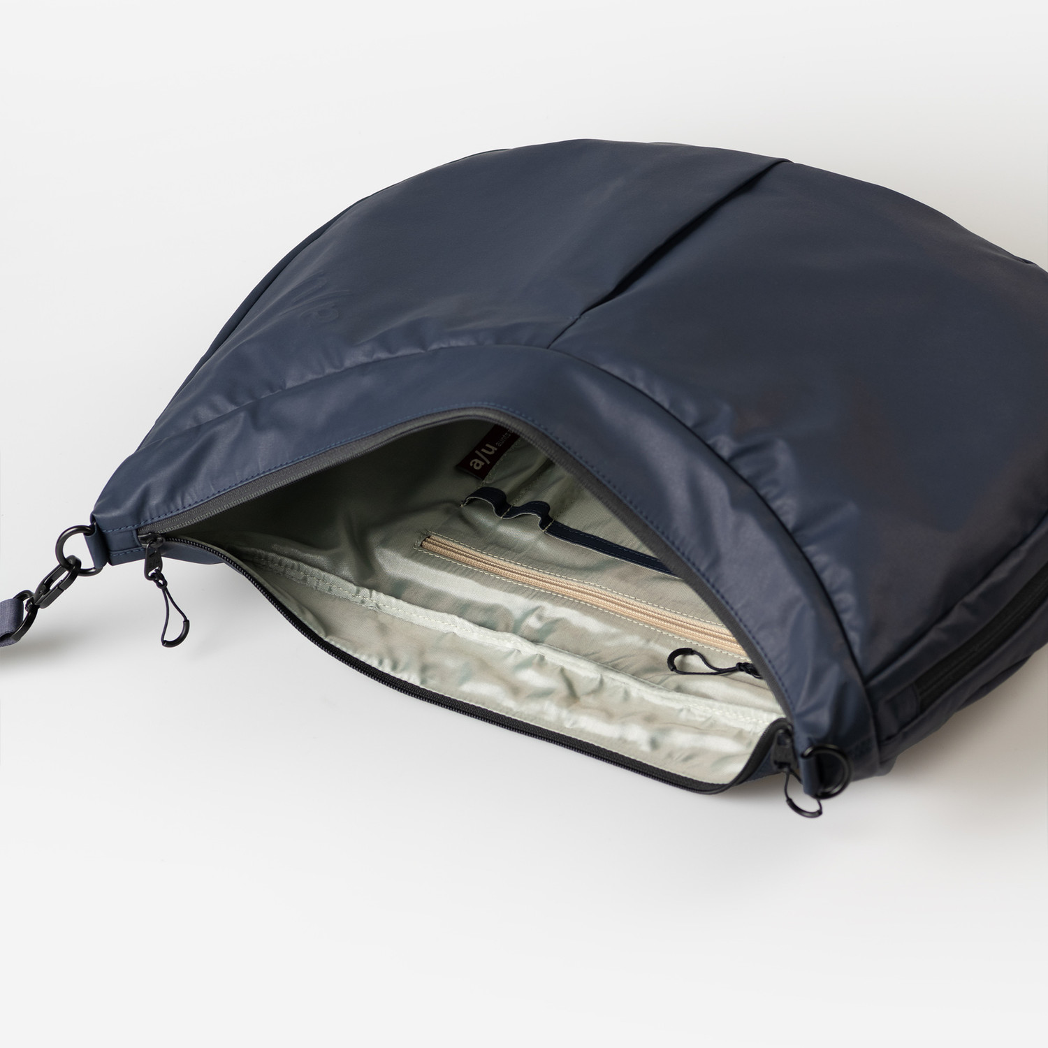 Du suchst eine Sport- oder Reisetasche abseits der bekannten Designs Oder einfach nur eine leichte Tasche für den Alltag, in der du alles, aber auch wirklich alles unterbringen kannst, das unterwegs nicht fehlen darf? Dann ist Miyagawa die Richtige für dich, denn die Umhängetasche aus knautschigem, recyceltem Nylon kommt in der modernen Form einer Halfmoon Bag und bietet dabei Stauraum nahezu ohne Ende. Das puffige Material ist leicht und gleichzeitig enorm robust und verleiht Miyagawa einen entspannten, sportiven Look. Äußere Reißverschlussfächer und ein strukturiertes Innendesign u. a. mit herausnehmbarem Extra-Täschchen und Schlüsselband sorgen für Ordnung und Übersicht.