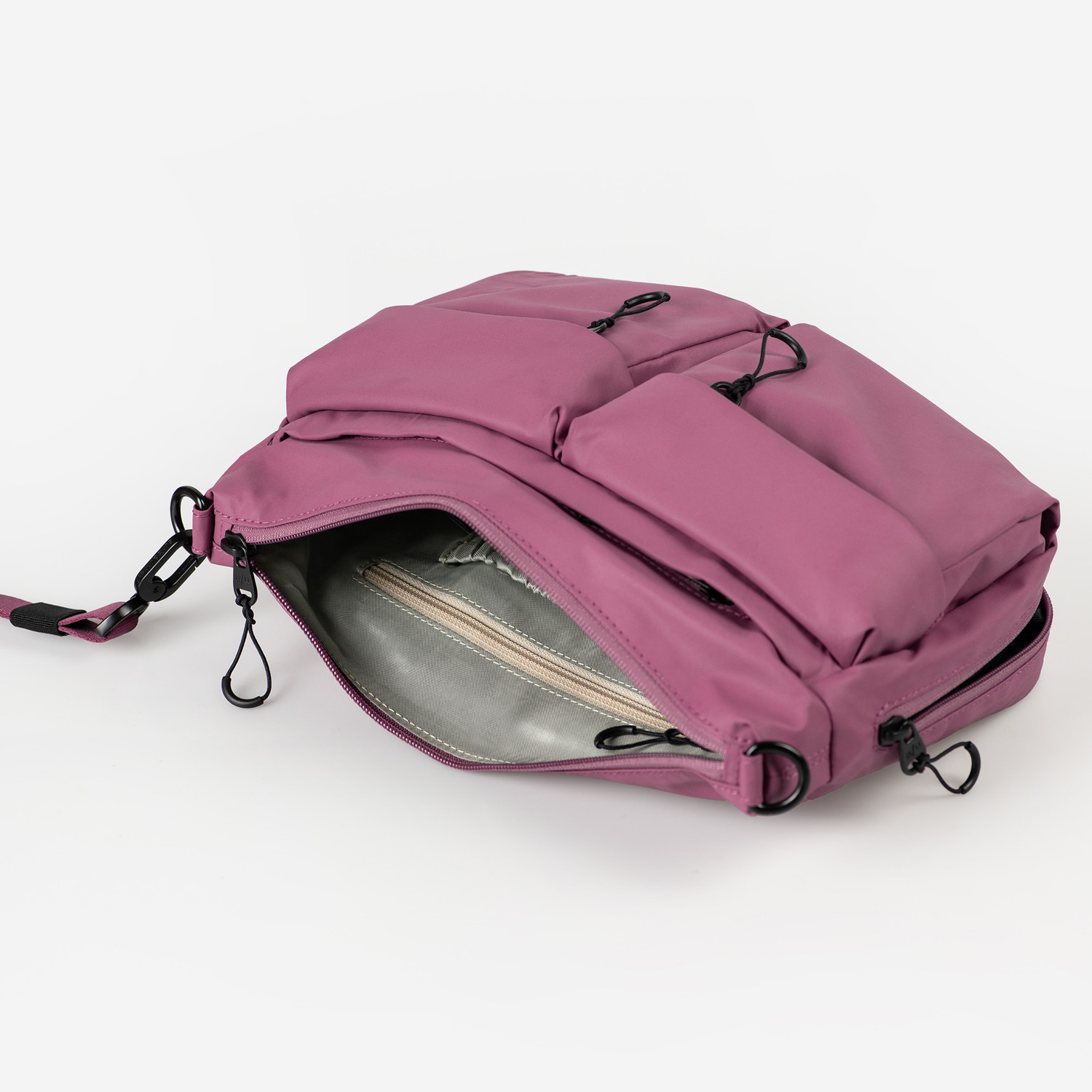 Ebenso wie die größere Variante Omono besticht Mogami durch übersichtlichen Stauraum in knautschiger Form. Die regenfeste Umhängetasche ist aus leichtem, recyceltem Nylon gefertigt. Das puffige Design verleiht deinem Look einen lässigen, sportiven Touch. Das Hauptfach mit Reißverschluss bietet ausreichend Platz für deine täglichen Essentials, während äußere Reißverschlussfächer schnellen Zugriff auf wichtige Gegenstände ermöglichen. Dank des umlaufenden Reißverschlusses lässt sich das Taschenvolumen nach Bedarf erweitern, sodass du immer genügend Platz für alles hast, was du mitnehmen möchtest.