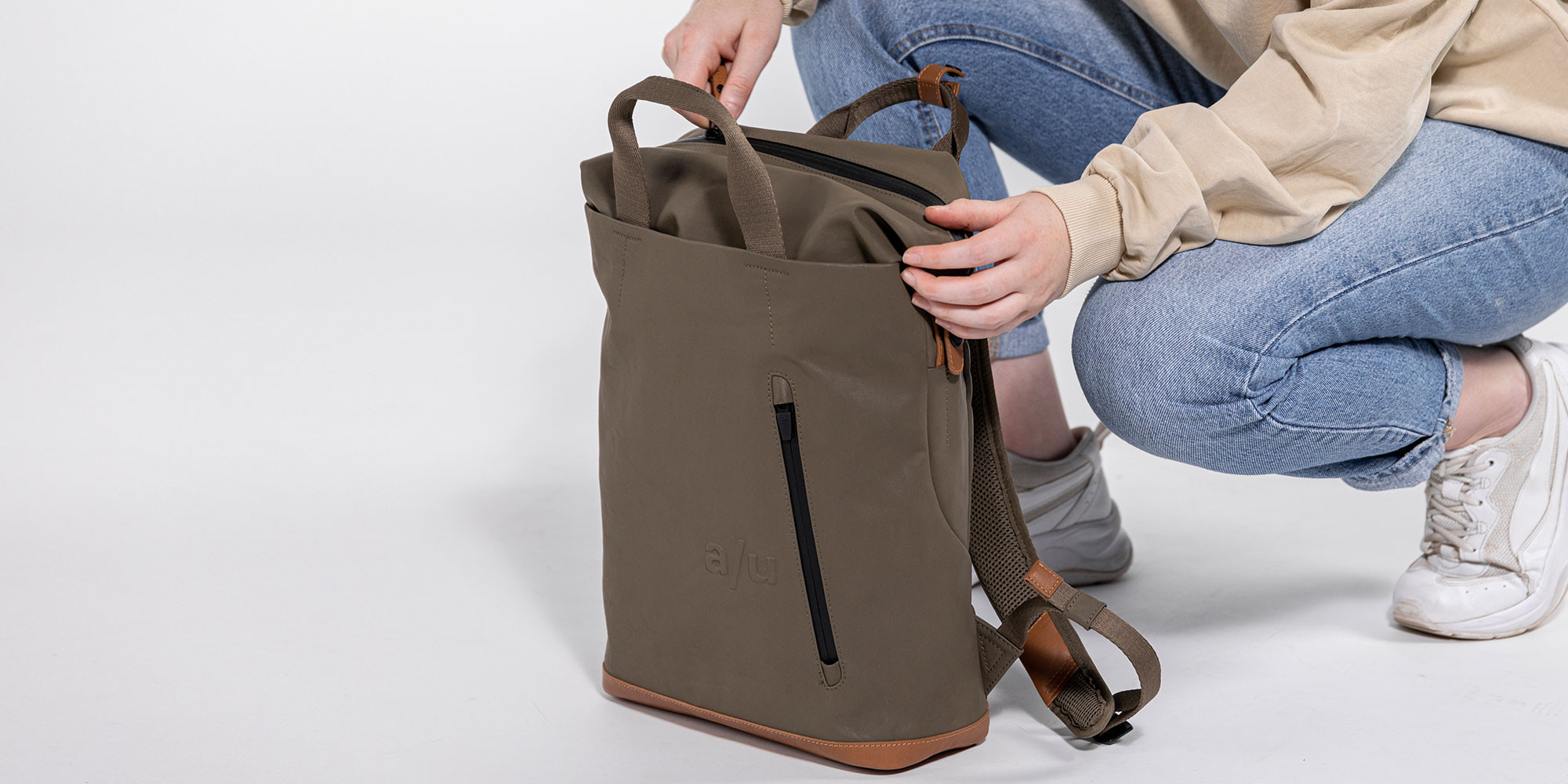 Das Canvas in unserer Japan Serie ist aus dicht gekämmter und gewebter Biobaumwolle gefertigt und mit einem seidenmatten Vintage-Coating veredelt. Das PFC- und PFAS-freie Coating verleiht den Styles eine wasserabweisende Oberfläche mit lederähnlicher Optik, die sich mit dem Gebrauch poliert. Die Lederapplikationen sind aus Rindleder gefertigt. Pflegeempfehlung