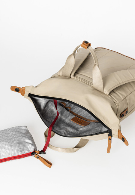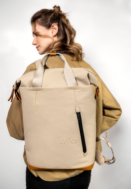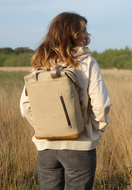 Das Canvas in unserer Japan Serie ist aus dicht gekämmter und gewebter Biobaumwolle gefertigt und mit einem seidenmatten Vintage-Coating veredelt. Das PFAS-freie Coating verleiht den Styles eine wasserabweisende Oberfläche mit lederähnlicher Optik, die sich mit dem Gebrauch poliert. Wir verwenden für diese Serie spezielle Hochleistungsfäden, die kein Wasser ziehen. Die regenfesten Reißverschlüsse sind aus recyceltem Material gefertigt. Die Lederapplikationen sind aus nachhaltig gegerbtem Premium-Rindleder. Pflegeempfehlung