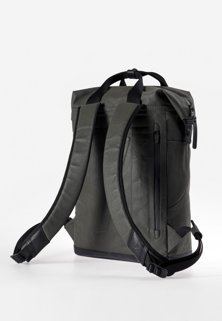 Das Canvas in unserer Japan Serie ist aus dicht gekämmter und gewebter Biobaumwolle gefertigt und mit einem seidenmatten Vintage-Coating veredelt. Das PFAS-freie Coating verleiht den Styles eine wasserabweisende Oberfläche mit lederähnlicher Optik, die sich mit dem Gebrauch poliert. Wir verwenden für diese Serie spezielle Hochleistungsfäden, die kein Wasser ziehen. Die regenfesten Reißverschlüsse sind aus recyceltem Material gefertigt. Die Lederapplikationen sind aus nachhaltig gegerbtem Premium-Rindleder. Pflegeempfehlung