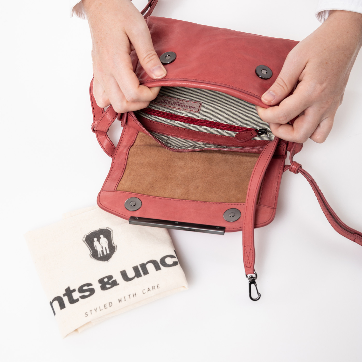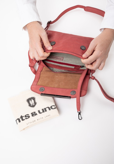 Das Premium-Rindleder in Grandma's Luxury Club ist ein hoch vegetabil gegerbtes Anilinleder mit welligem Look. Die charakteristischen matten und glänzenden Kontraste entstehen durch sorgfältige händische Nachbearbeitung und machen jedes Stück zu einem Unikat. Pflegeempfehlung