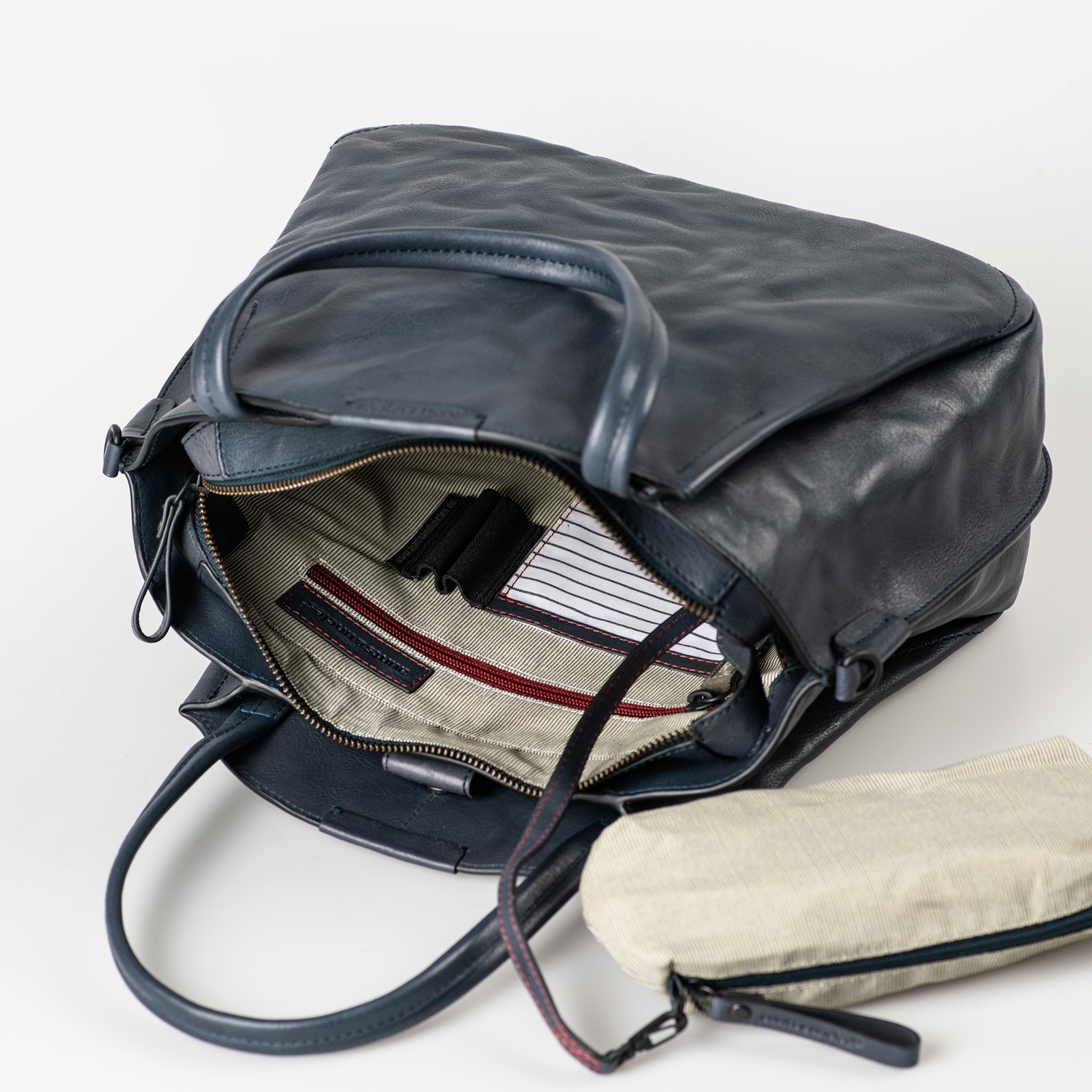 Typisch für unsere Taschen aus Grandma's Luxury Club verbindet Mrs. Chiffon Pie modern interpretierten Retro-Charme mit charakterstarkem Leder und Liebe zum Detail. Die trapezförmige Handtasche ist dreifach unterteilt. Das Hauptfach schließt mit einem Reißverschluss. Zwei weitere äußere Fächer lassen sich mit einem Druckknopf schließen. Im Inneren findest du verschiedene Einsteckmöglichkeiten, ein Schlüsselband und ein herausnehmbares Extra-Täschchen. Metallfüßchen schützen den Boden vor Nässe und Schmutz. Du kannst Mrs. Chiffon Pie klassisch in der Hand oder in der Armbeuge tragen. Optional bietet dir der mitgelieferte lange Umhängegurt eine Crossbody-Tragevariante.