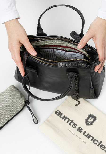 Das Premium-Rindleder in Grandma's Luxury Club ist ein hoch vegetabil gegerbtes Anilinleder mit welligem Look. Die charakteristischen matten und glänzenden Kontraste entstehen durch sorgfältige händische Nachbearbeitung und machen jedes Stück zu einem Unikat. Pflegeempfehlung