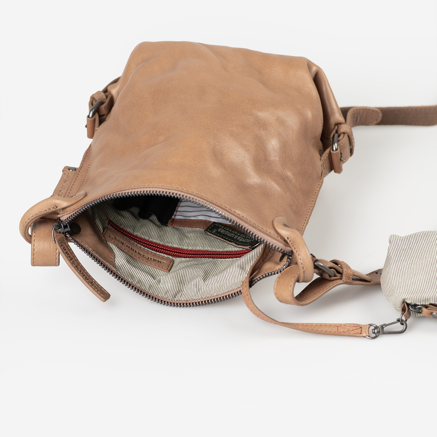 Von ihrer Größe her ist Mrs. Chocolate Cookie eher Krümel statt Keks und damit genau die richtige Begleitung, wenn du unterwegs nicht ganz so viel dabei haben möchtest. Ein bisschen lässt sich das Volumen der kleinen Umhängetasche aber auch noch vergrößern und dank praktischer Einsteckmöglichkeiten ist Ordnung auch auf kleinem Raum garantiert.
