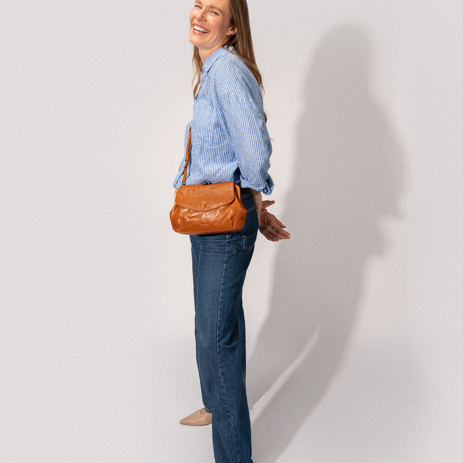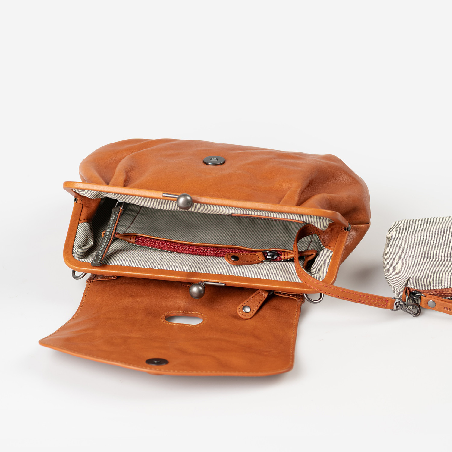 Mit Nonchalance und jeder Menge Retro-Charme begleitet dich Mrs. Madeline stilsicher durch den Tag. Das durchdachte Design der Umhängetasche lädt zum Entdecken ein, denn unter dem Überschlag findet sich eine große, in Leder gefasste Bügelöffnung, die ein Hauptfach und zwei weitere, separate Fächer offenbart. Es erwarten dich außerdem drei Reißverschlussfächer, acht Kartensteckfächer mit RFID-Schutz, ein großes Einsteckfach z. B. für dein Smartphone und ein praktisches Schlüsselband. Ein weiteres Reißverschlussfach befindet sich auf der Rückseite der Tasche. Du siehst, deine Geldbörse kannst du getrost zuhause lassen, denn Mrs. Madeline ist Tasche und Portemonnaie in einem. Der längenverstellbare Gurt ist - für besonderen Tragekomfort - mit einem extra Schulterpolster versehen. Wenn du ihn abnimmst, kannst du Mrs. Madeline auch elegant als große Cluch tragen.