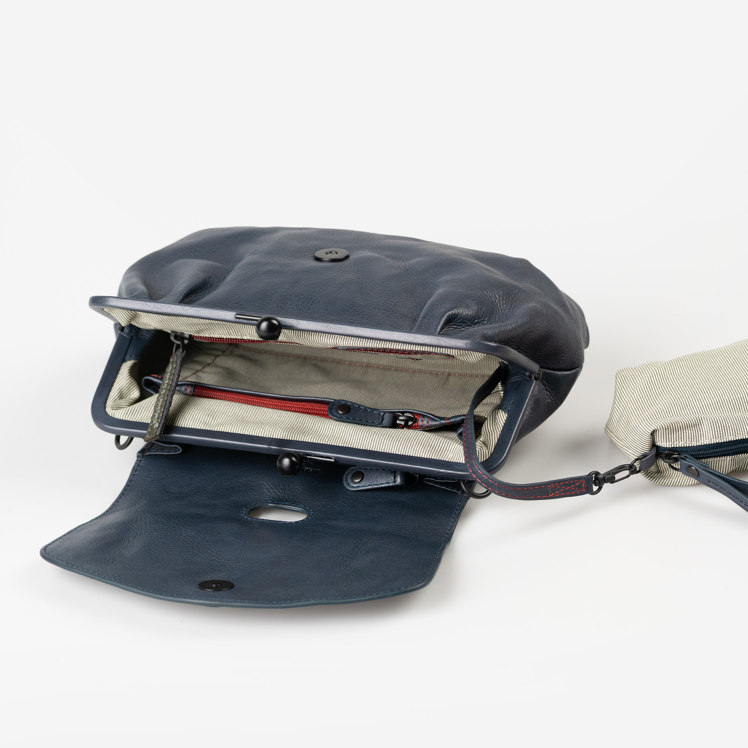 Mit Nonchalance und jeder Menge Retro-Charme begleitet dich Mrs. Madeline stilsicher durch den Tag. Das durchdachte Design der Umhängetasche lädt zum Entdecken ein, denn unter dem Überschlag findet sich eine große, in Leder gefasste Bügelöffnung, die ein Hauptfach und zwei weitere, separate Fächer offenbart. Es erwarten dich außerdem drei Reißverschlussfächer, acht Kartensteckfächer mit RFID-Schutz, ein großes Einsteckfach z. B. für dein Smartphone und ein praktisches Schlüsselband. Ein weiteres Reißverschlussfach befindet sich auf der Rückseite der Tasche. Du siehst, deine Geldbörse kannst du getrost zuhause lassen, denn Mrs. Madeline ist Tasche und Portemonnaie in einem. Der längenverstellbare Gurt ist - für besonderen Tragekomfort - mit einem extra Schulterpolster versehen. Wenn du ihn abnimmst, kannst du Mrs. Madeline auch elegant als große Cluch tragen.
