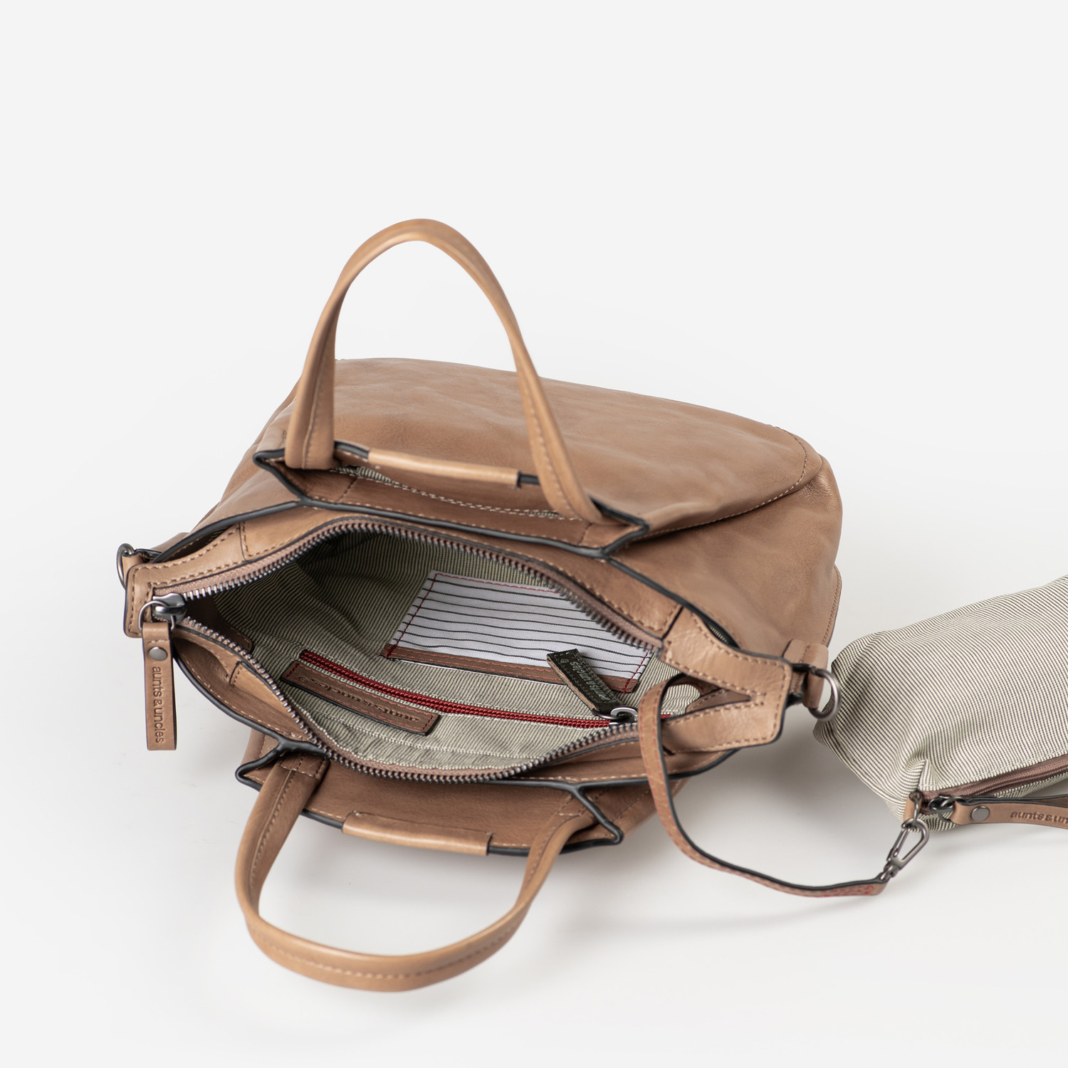Zeitloses Design für jeden Anlass: Mrs. Plum Crumble, die kleine Variante unserer beliebten Mrs. Chiffon Pie, begeistert mit übersichtlichem Stauraum in kompakter Größe. Die trapezförmige Handtasche bietet ausreichend Platz für all deine wichtigen Essentials und verbindet modern interpretierten Retro-Charme mit charakterstarkem Leder und praktischer Handhabung. Trage Mrs. Plum Crumble in der Hand oder elegant in der Armbeuge! Optional ermöglicht dir der abnehmbare lange Gurt, Mrs. Plum Crumble auch lässig als Umhängetasche zu tragen.