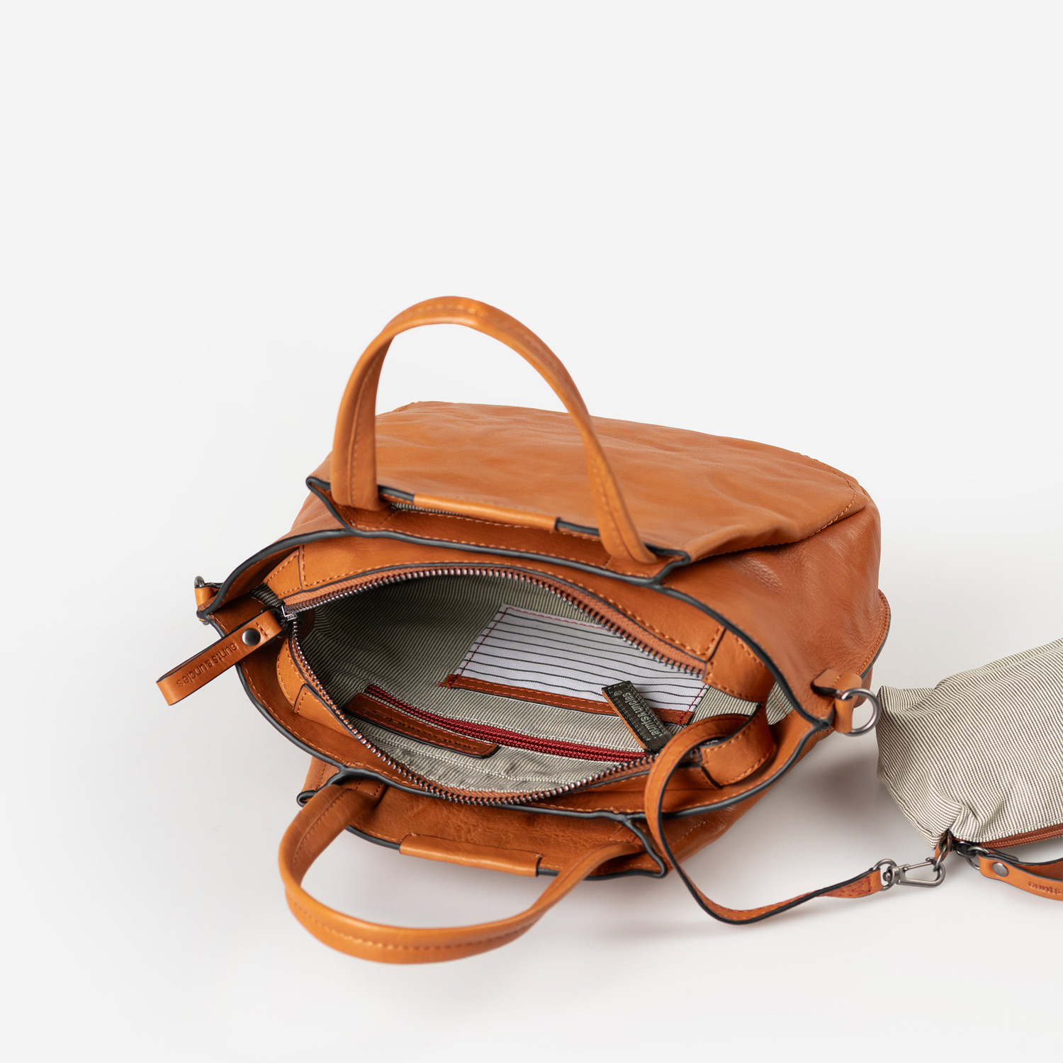 Zeitloses Design für jeden Anlass: Mrs. Plum Crumble, die kleine Variante unserer beliebten Mrs. Chiffon Pie, begeistert mit übersichtlichem Stauraum in kompakter Größe. Die trapezförmige Handtasche bietet ausreichend Platz für all deine wichtigen Essentials und verbindet modern interpretierten Retro-Charme mit charakterstarkem Leder und praktischer Handhabung. Trage Mrs. Plum Crumble in der Hand oder elegant in der Armbeuge! Optional ermöglicht dir der abnehmbare lange Gurt, Mrs. Plum Crumble auch lässig als Umhängetasche zu tragen.