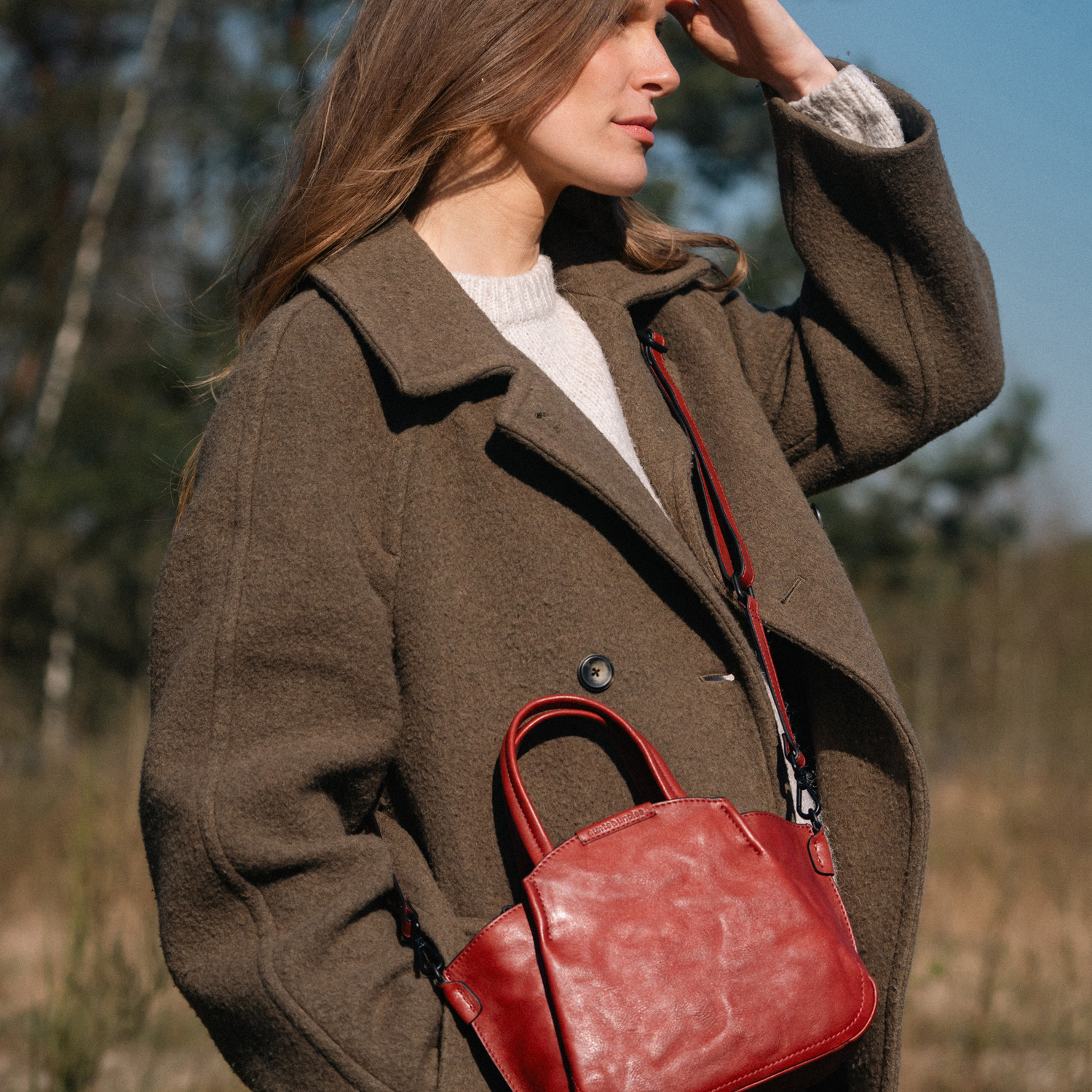 Das Premium-Rindleder in Grandma's Luxury Club ist ein hoch vegetabil gegerbtes Anilinleder mit welligem Look. Die charakteristischen matten und glänzenden Kontraste entstehen durch sorgfältige händische Nachbearbeitung und machen jedes Stück zu einem Unikat. Pflegeempfehlung