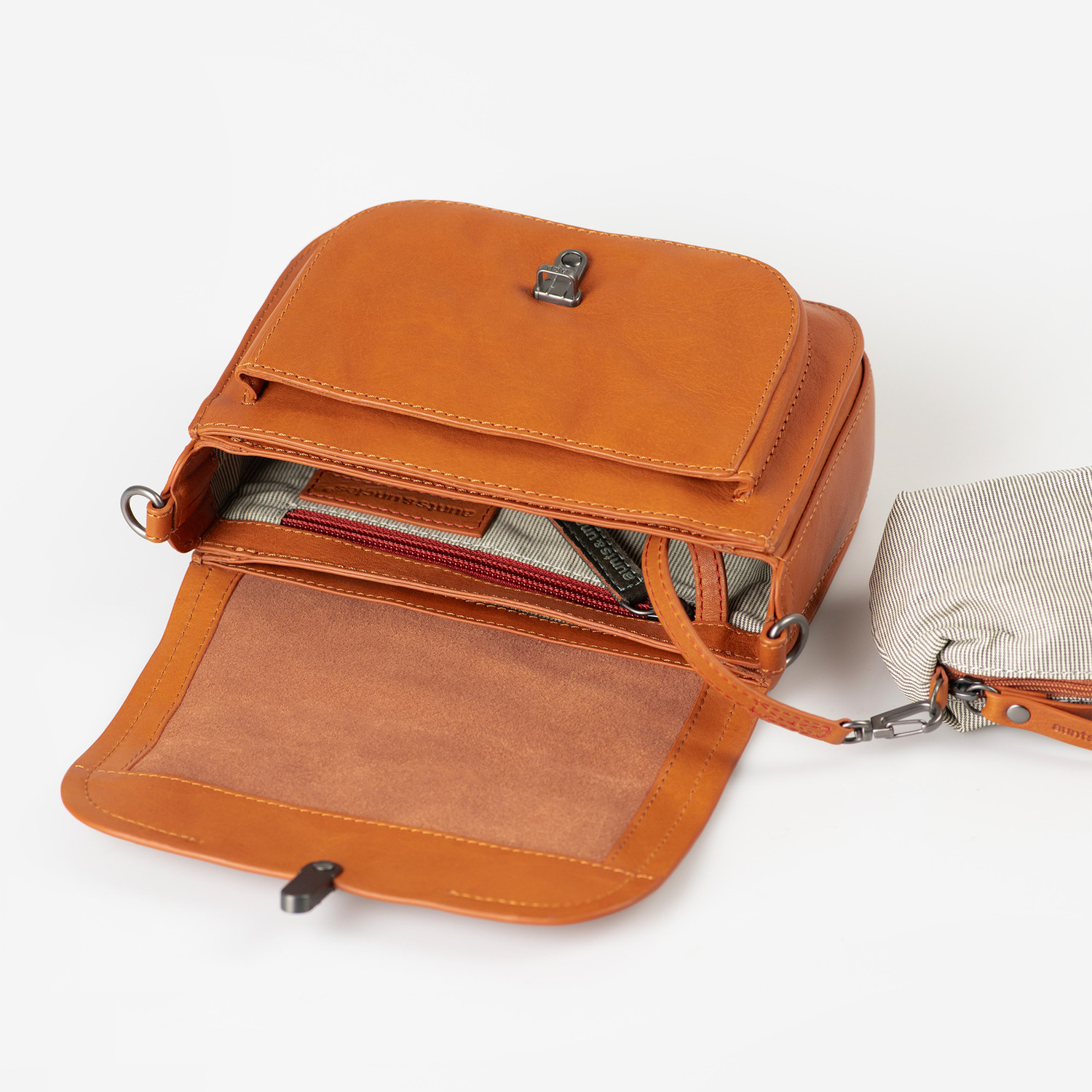An allen Tagen, an denen du unterwegs nur Platz für das Nötigste brauchst, ist Mrs. Waffle deine ideale Begleitung. Die Umhängetasche mit dem schmalen Steckschloss hält deine Habseligkeiten sicher unter Verschluss und sieht dabei unheimlich adrett aus.