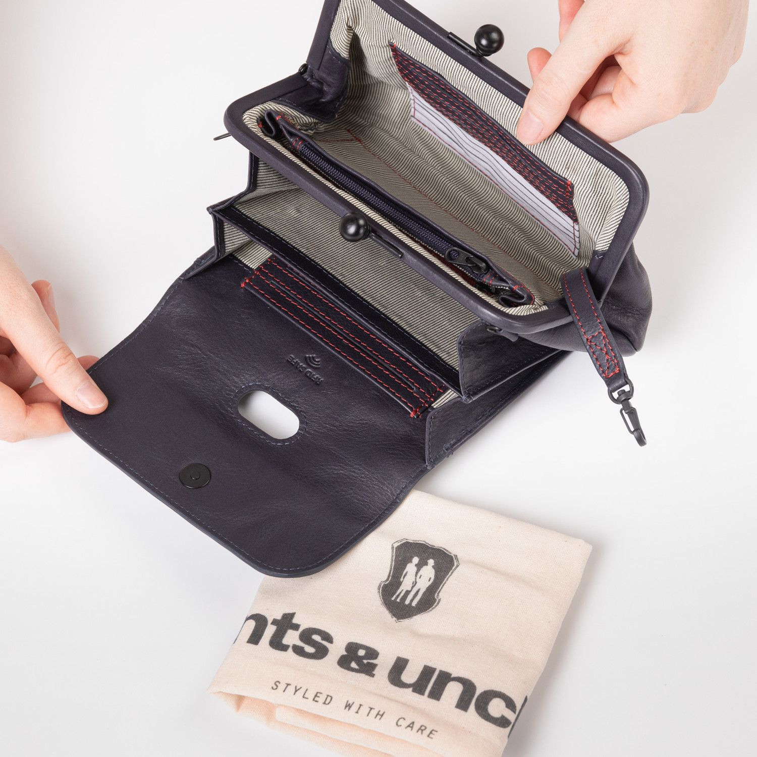 Das Premium-Rindleder in Grandma's Luxury Club ist ein hoch vegetabil gegerbtes Anilinleder mit welligem Look. Die charakteristischen matten und glänzenden Kontraste entstehen durch sorgfältige händische Nachbearbeitung und machen jedes Stück zu einem Unikat. Pflegeempfehlung