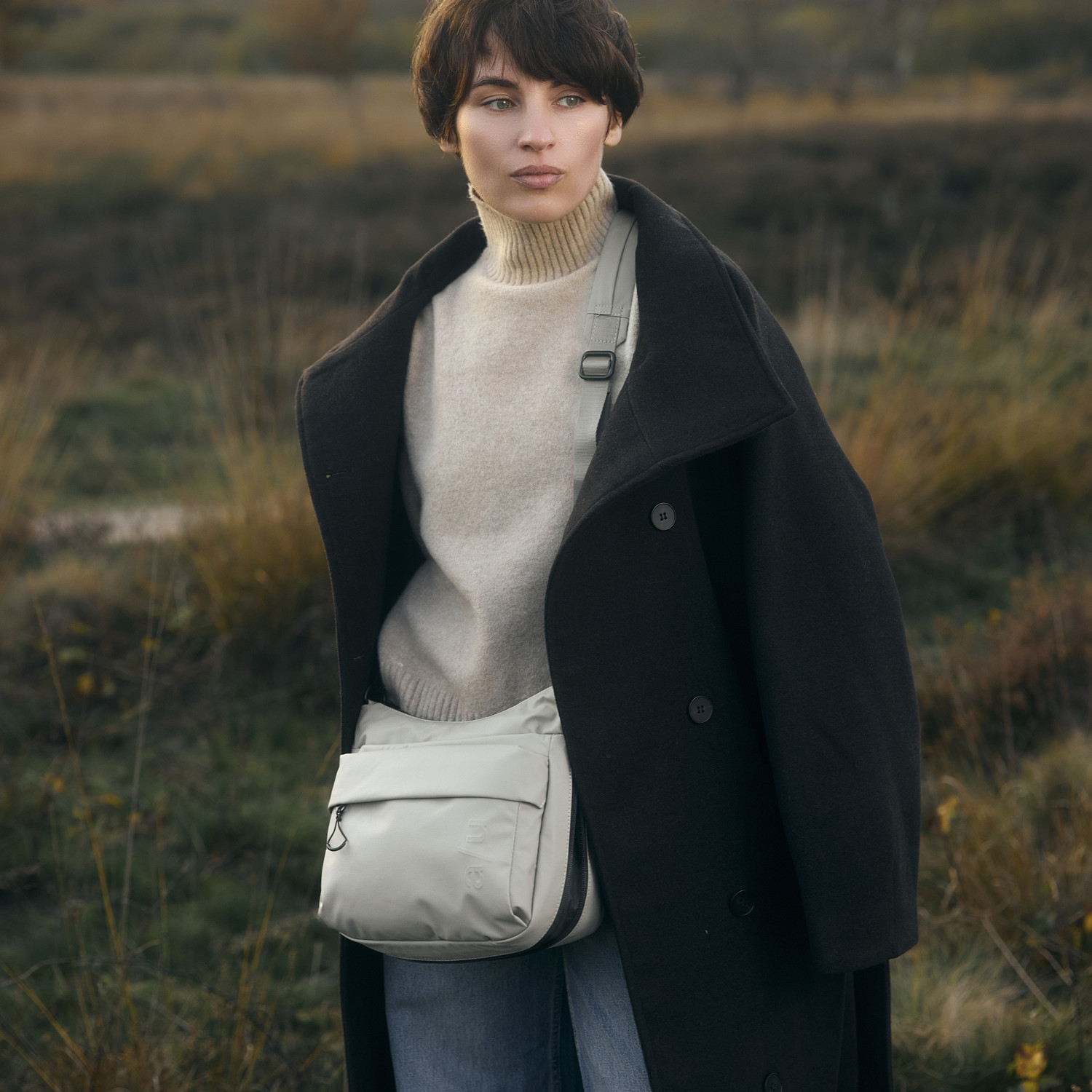 Das leichte und robuste Nylon ist nach dem Global Recycled Standard zertifiziert und hat eine PFC- und PFAS-freie PU-Beschichtung, die ihm eine hochfunktionale, wasserabweisende Oberfläche verleiht. Darüber hinaus verwenden wir spezielle Hochleistungsfäden. Die strapazierbaren YKK-Reißverschlüsse sind wasserabweisend imprägniert. Im Inneren ist ein Futterstoff aus recyceltem Polyester verarbeitet. Pflegeempfehlung