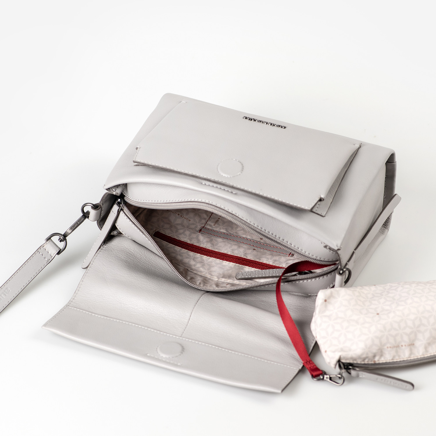 Das weiche, griffige Rindleder ist sorgsam semi-vegetabil. Handwerkliche Details unterstreichen Qualität und Individualität der Styles. Die hochwertige Hardware in smokey Grey ist matt gebürstet.Pflegeempfehlung
