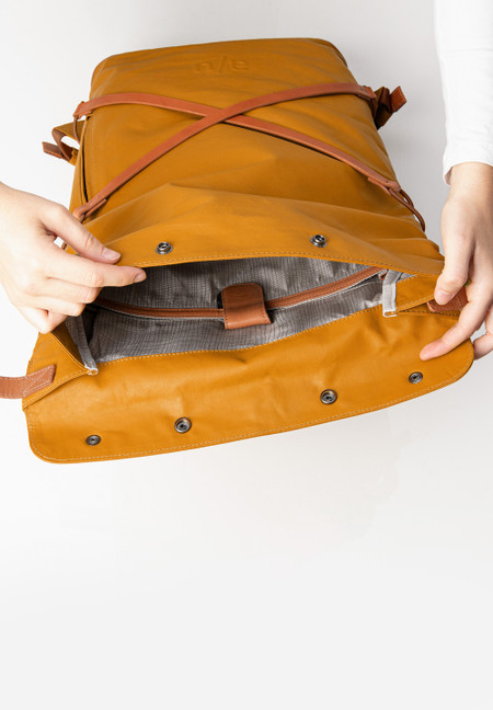 Das Canvas in unserer Japan Serie ist aus dicht gekämmter und gewebter Biobaumwolle gefertigt und mit einem seidenmatten Vintage-Coating veredelt. Das PFC- und PFAS-freie Coating verleiht den Styles eine wasserabweisende Oberfläche mit lederähnlicher Optik, die sich mit dem Gebrauch poliert. Die Lederapplikationen sind aus Rindleder gefertigt. Pflegeempfehlung