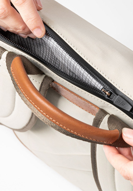 Das Canvas in unserer Japan Serie ist aus dicht gekämmter und gewebter Biobaumwolle gefertigt und mit einem seidenmatten Vintage-Coating veredelt. Das PFAS-freie Coating verleiht den Styles eine wasserabweisende Oberfläche mit lederähnlicher Optik, die sich mit dem Gebrauch poliert. Wir verwenden für diese Serie spezielle Hochleistungsfäden, die kein Wasser ziehen. Die regenfesten Reißverschlüsse sind aus recyceltem Material gefertigt. Die Lederapplikationen sind aus nachhaltig gegerbtem Premium-Rindleder. Pflegeempfehlung