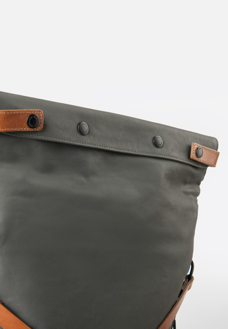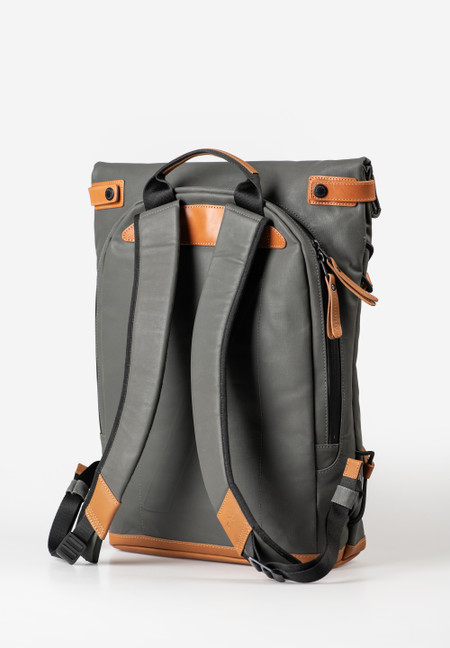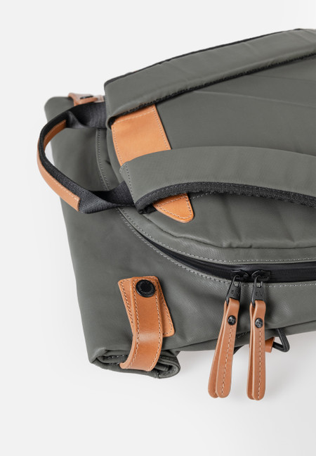 Das Canvas in unserer Japan Serie ist aus dicht gekämmter und gewebter Biobaumwolle gefertigt und mit einem seidenmatten Vintage-Coating veredelt. Das PFC- und PFAS-freie Coating verleiht den Styles eine wasserabweisende Oberfläche mit lederähnlicher Optik, die sich mit dem Gebrauch poliert. Die Lederapplikationen sind aus Rindleder gefertigt. Pflegeempfehlung