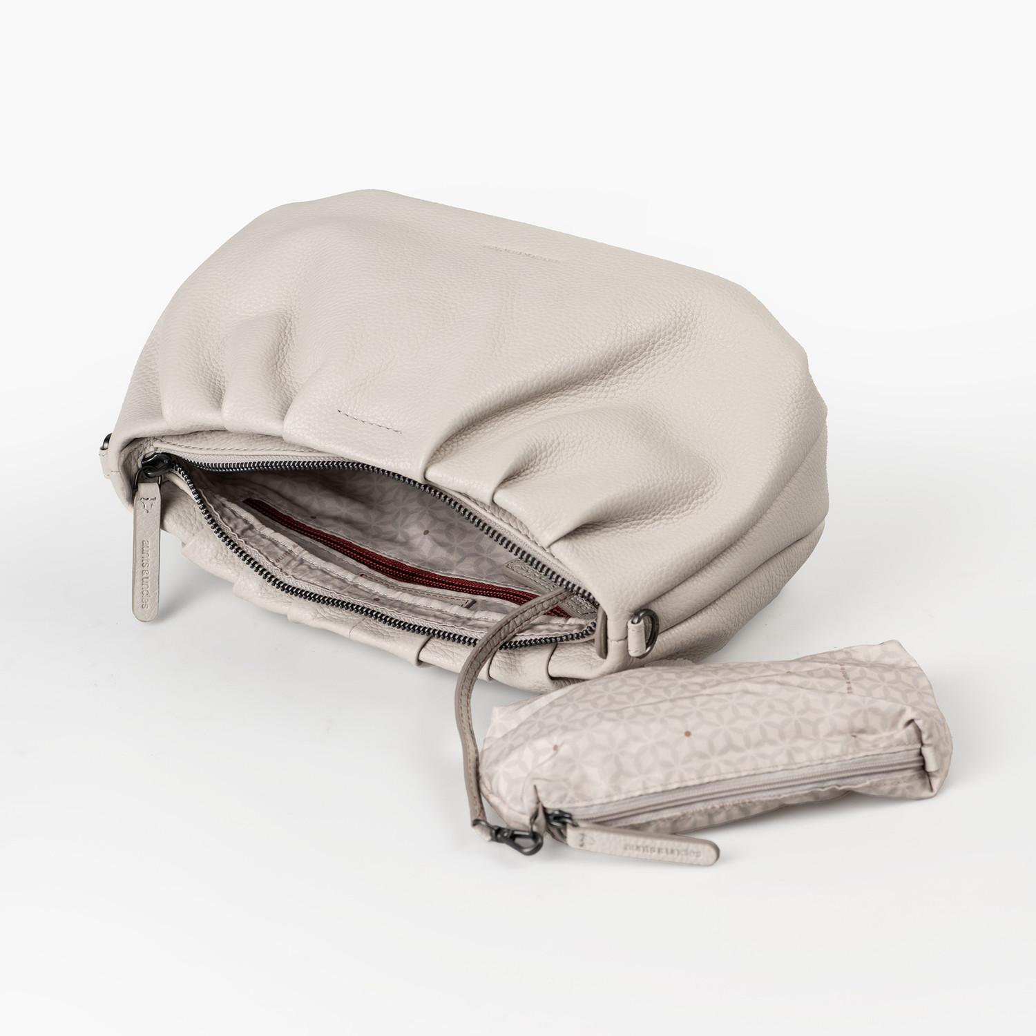 Pearl ist eine lässig elegante Schultertasche aus genarbtem Leder, das durch eine besonders weiche, knautschige Haptik zu überzeugen weiß. Das übersichtlich sortierte Innenleben mit verschiedenen Einsteckmöglichkeiten und einem praktischen Schlüsselband machen die weiche Schultertasche zur idealen Begleitung für jeden Tag, denn der breite Boden sorgt für ein volumiges Design mit viel Stauraum. Die zarten Raffungen kreieren eine feminine Ästhetik, die deinem Outfit eine moderne Note verleiht. Neben einem breiten Schultergurt bringt Pearl einen längenverstellbaren Umhängegurt mit.