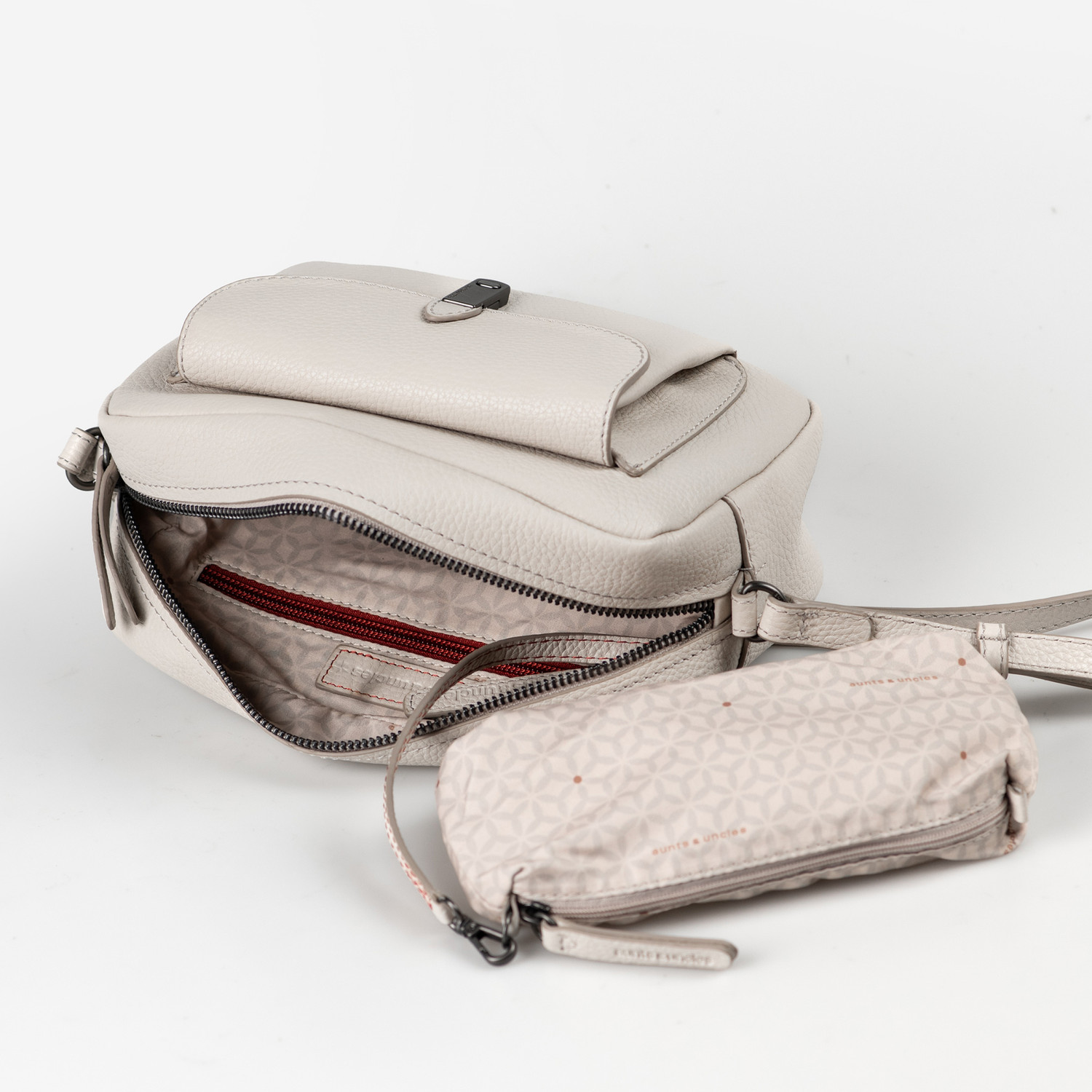 Posh punktet mit sortiertem Stauraum in zeitlosem Design. Die klassische Kastenform und der edle, schmale Verschluss auf der Front verleihen der Umhängetasche eine mühelose Eleganz. Das Hauptfach der Camera Bag ist mit einem praktischen Reißverschluss ausgestattet. Die Vortasche bietet schnellen Zugriff auf wichtige Utensilien. Das zusätzlich gesicherte Reißverschlussfach auf der Rückseite bietet Platz für kleinere Gegenstände, die besonders sicher verstaut werden wollen. Das organisierte Innenleben umfasst neben verschiedenen Steckmöglichkeiten auch ein herausnehmbares Stofftäschchen und ein Schlüsselband. Ein Schulterpolster sorgt für bequemen Tragekomfort.