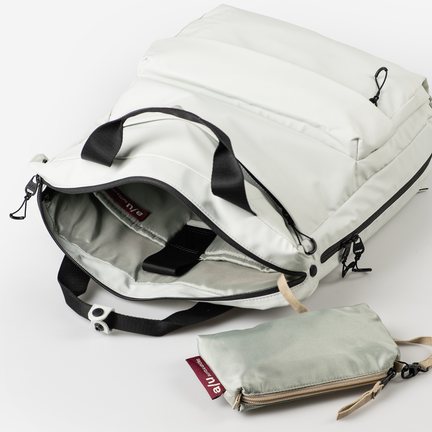 Die Styles sind aus dicht gewebtem, nach dem Global Recycled Standard zertifiziertem Nylon gefertigt und haben eine wasserabweisende Imprägnierung. Ein zusätzliches PFAS-freies Coating verleiht ihnen eine hochfunktionelle, wasserabweisende Oberfläche. Darüber hinaus verwenden wir spezielle Hochleistungsfäden, die kein Wasser ziehen. Die hellen Styles sind mit einer zusätzlichen schmutzabweisenden Beschichtung versehen. Im Inneren ist ein strapazierfähiger Futterstoff aus recyceltem Polyester verarbeitet.