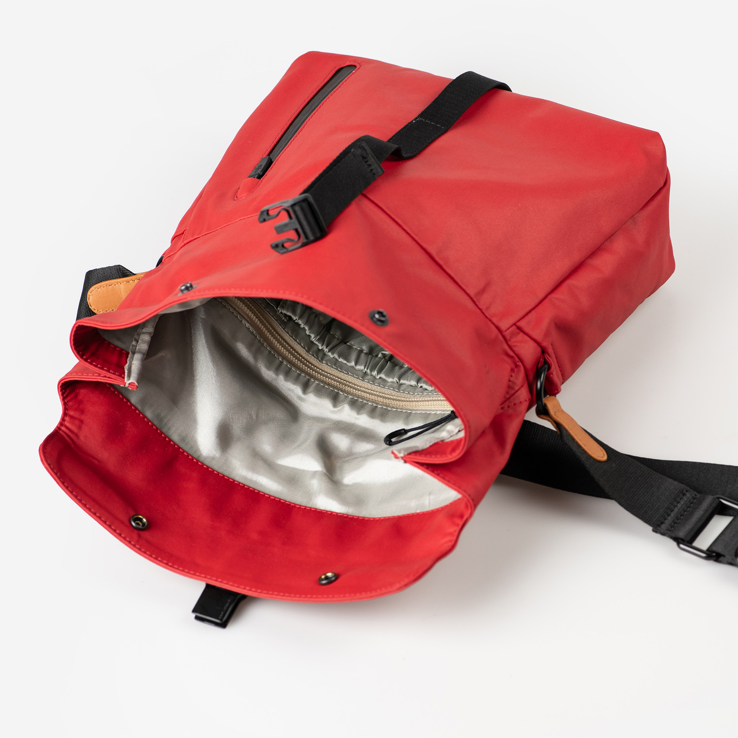 Das leichte und zugleich extrem strapazierfähige, recycelte Nylon hat ein Zertifikat für den Global Recycled Standard. Zusätzlich zu einer wasserabweisenden Imprägnierung schützt ein PFC- und PFAS-freies Coating zuverlässig vor Nässe und verleiht dem Material eine hochfunktionale, wetterbeständige Oberfläche. Darüber hinaus verwenden wir spezielle wasserabweisende Hochleistungsfäden. Die Reißverschlüsse sind wasserabweisend imprägniert. Die Aquaguard Reißverschlüsse von YKK werden aus recyceltem PET hergestellt. Die Lederapplikationen der nicht veganen Styles sind aus nachhaltig gegerbtem Premium-Rindleder gefertigt und stammen aus einer LWG-zertifizierten Gerberei. Der a/u-Futterstoff ist aus recyceltem Polyester gefertigt. Pflegeempfehlung