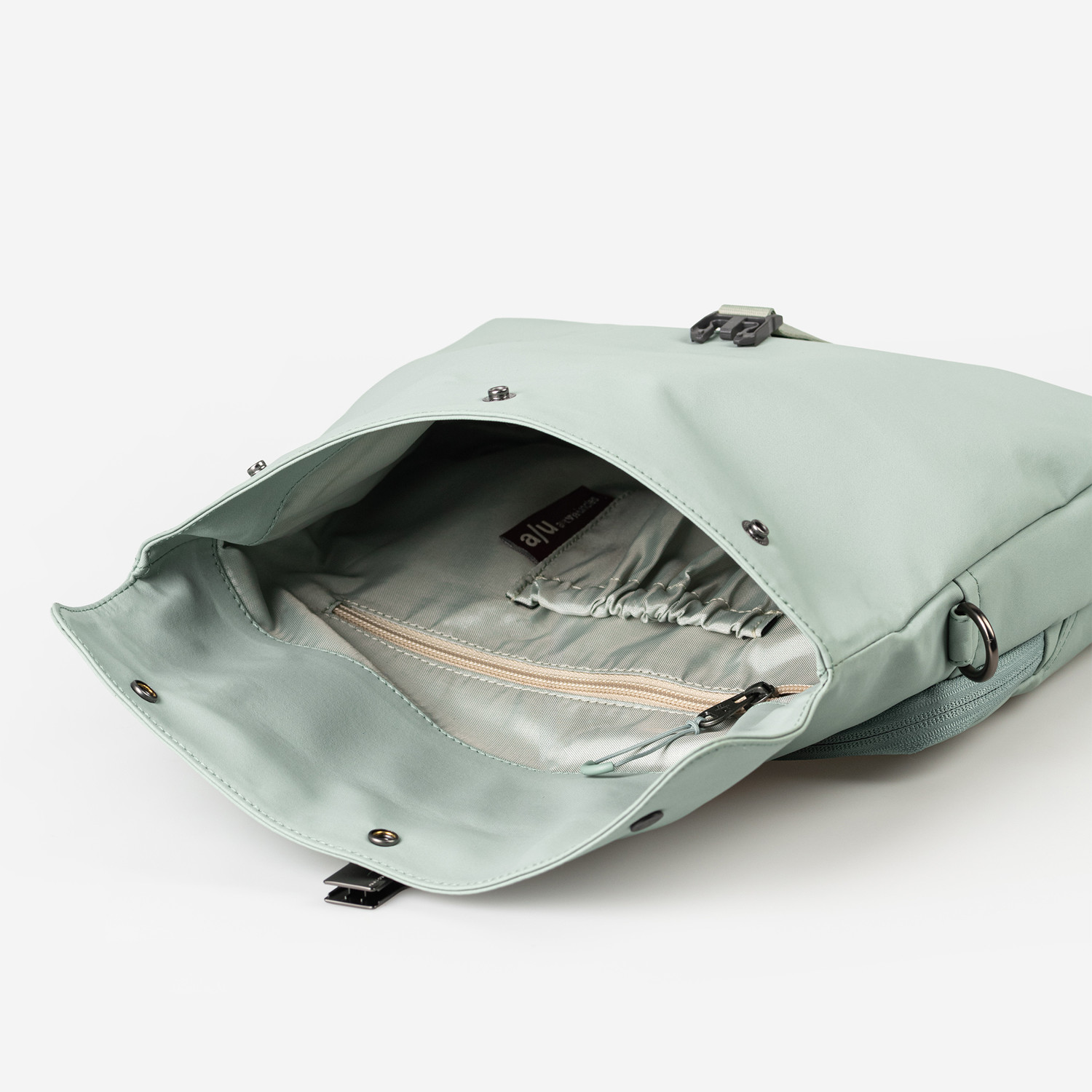 Speziell für unsere Japan RE Linie entwickelter a/u-REnuno Stoff: Das leichte und zugleich strapazierfähige, recycelte Nylon ist nach dem Global Recycled Standard zertifiziert. Neben einer wasserabweisenden Imprägnierung schützt ein PFAS-freies Coating zuverlässig vor Nässe und verleiht dem Material eine hochfunktionale, wetterbeständige Oberfläche. Darüber hinaus verwenden wir hochfestes, wasserabweisend imprägniertes Nähgarn. Die YKK Raquet Coil Reißverschlüsse haben eine wasserabweisende Imprägnierung. Die Lederapplikationen sind aus nachhaltig gegerbtem Premium-Rindleder gefertigt und stammen aus einer LWG-zertifizierten Gerberei. Der a/u-Futterstoff besteht aus recyceltem Polyester. Pflegeempfehlung