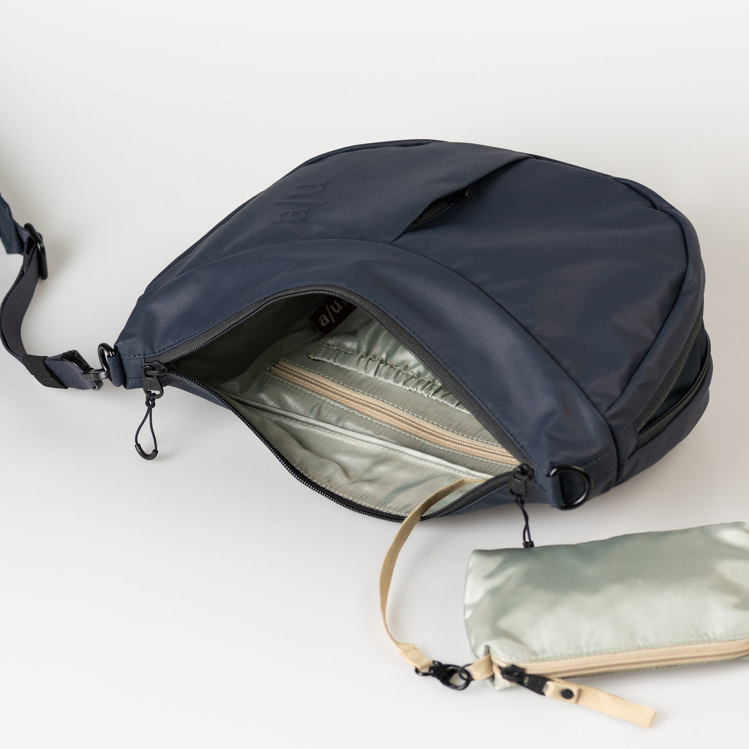 Toyo kommt in der entspannten Form einer knautschigen Halfmoon Bag, leicht und gleichzeitig regenfest und robust. Ihr geräumiges Hauptfach bietet reichlich Stauraum für alles, was dir unterwegs wichtig ist. Übersichtliche Innenfächer, ein herausnehmbares Extra-Täschchen und ein Schlüsselband halten deine Essentials an Ort und Stelle, während äußere Reißverschlussfächer auf der Vorder- und Rückseite weitere Einsteckmöglichkeiten bieten. Und sollte das immer noch nicht reichen, weil du spontan etwas mehr Platz brauchst als sonst, kannst du das Volumen von Toyo mithilfe des umlaufenden Reißverschlusses ganz einfach auch noch ein gutes Stück vergrößern.