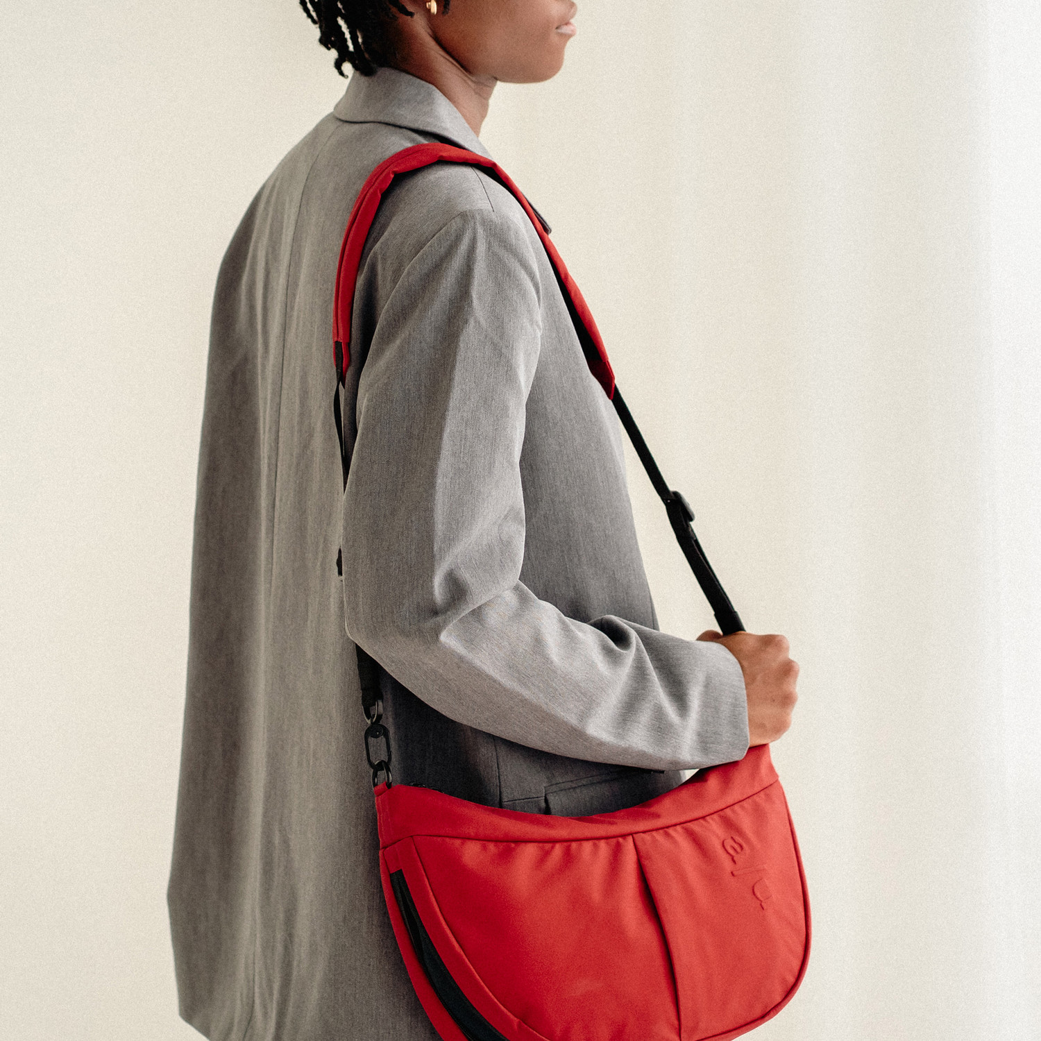 Toyo kommt in der entspannten Form einer knautschigen Halfmoon Bag, leicht und gleichzeitig regenfest und robust. Ihr geräumiges Hauptfach bietet reichlich Stauraum für alles, was dir unterwegs wichtig ist. Übersichtliche Innenfächer, ein herausnehmbares Extra-Täschchen und ein Schlüsselband halten deine Essentials an Ort und Stelle, während äußere Reißverschlussfächer auf der Vorder- und Rückseite weitere Einsteckmöglichkeiten bieten. Und sollte das immer noch nicht reichen, weil du spontan etwas mehr Platz brauchst als sonst, kannst du das Volumen von Toyo mithilfe des umlaufenden Reißverschlusses ganz einfach auch noch ein gutes Stück vergrößern.