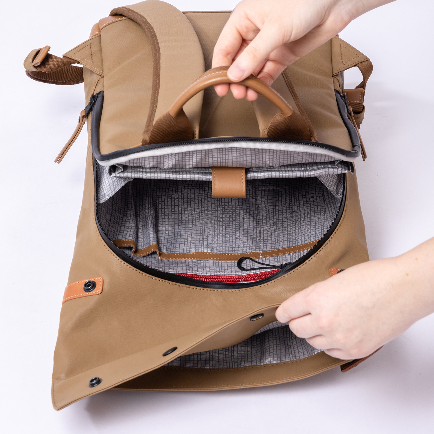 Das Canvas in unserer Japan Serie ist aus dicht gekämmter und gewebter Biobaumwolle gefertigt und mit einem seidenmatten Vintage-Coating veredelt. Das PFAS-freie Coating verleiht den Styles eine wasserabweisende Oberfläche mit lederähnlicher Optik, die sich mit dem Gebrauch poliert. Wir verwenden für diese Serie spezielle Hochleistungsfäden, die kein Wasser ziehen. Die regenfesten Reißverschlüsse sind aus recyceltem Material gefertigt. Die Lederapplikationen sind aus nachhaltig gegerbtem Premium-Rindleder. Pflegeempfehlung