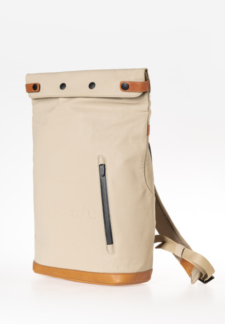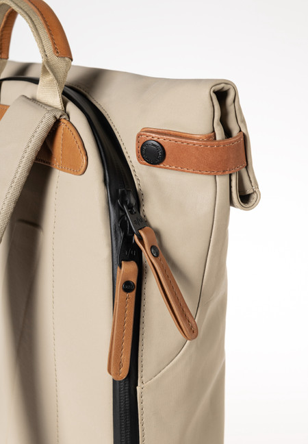 Das Canvas in unserer Japan Serie ist aus dicht gekämmter und gewebter Biobaumwolle gefertigt und mit einem seidenmatten Vintage-Coating veredelt. Das PFAS-freie Coating verleiht den Styles eine wasserabweisende Oberfläche mit lederähnlicher Optik, die sich mit dem Gebrauch poliert. Wir verwenden für diese Serie spezielle Hochleistungsfäden, die kein Wasser ziehen. Die regenfesten Reißverschlüsse sind aus recyceltem Material gefertigt. Die Lederapplikationen sind aus nachhaltig gegerbtem Premium-Rindleder. Pflegeempfehlung