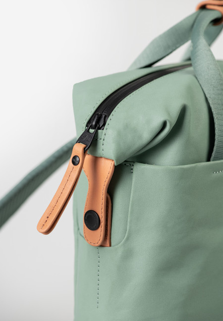 Das Canvas in unserer Japan Serie ist aus dicht gekämmter und gewebter Biobaumwolle gefertigt und mit einem seidenmatten Vintage-Coating veredelt. Das PFAS-freie Coating verleiht den Styles eine wasserabweisende Oberfläche mit lederähnlicher Optik, die sich mit dem Gebrauch poliert. Wir verwenden für diese Serie spezielle Hochleistungsfäden, die kein Wasser ziehen. Die regenfesten Reißverschlüsse sind aus recyceltem Material gefertigt. Die Lederapplikationen sind aus nachhaltig gegerbtem Premium-Rindleder. Pflegeempfehlung