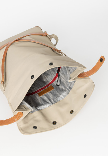 Das Canvas in unserer Japan Serie ist aus dicht gekämmter und gewebter Biobaumwolle gefertigt und mit einem seidenmatten Vintage-Coating veredelt. Das PFAS-freie Coating verleiht den Styles eine wasserabweisende Oberfläche mit lederähnlicher Optik, die sich mit dem Gebrauch poliert. Wir verwenden für diese Serie spezielle Hochleistungsfäden, die kein Wasser ziehen. Die regenfesten Reißverschlüsse sind aus recyceltem Material gefertigt. Die Lederapplikationen sind aus nachhaltig gegerbtem Premium-Rindleder. Pflegeempfehlung